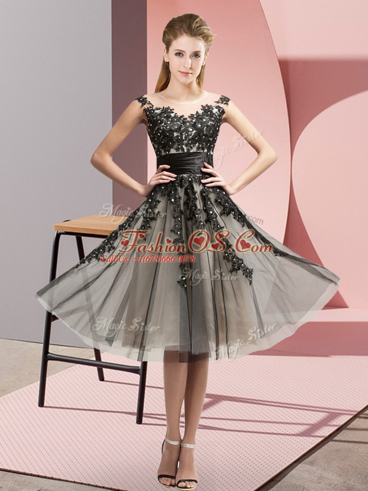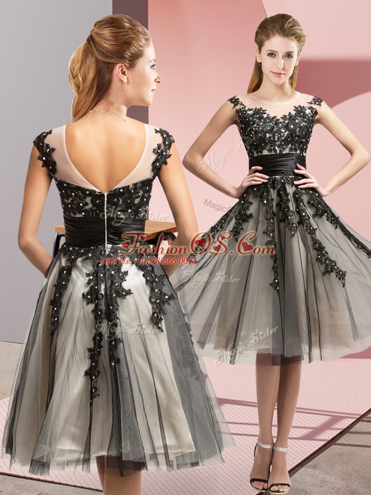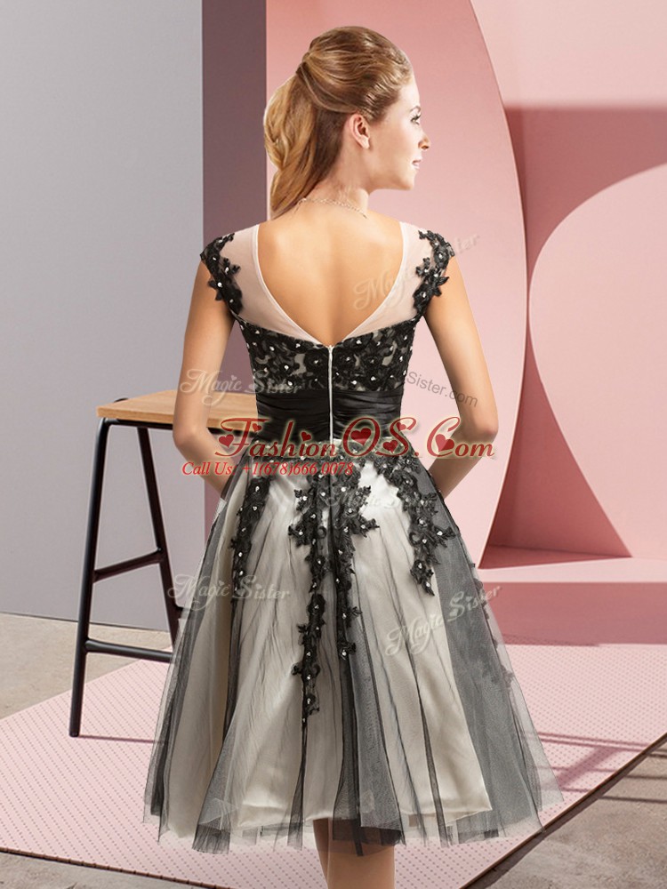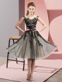Tulle Sleeveless Knee Length Quinceanera Court of Honor Dress and Beading and Lace