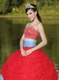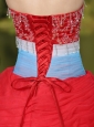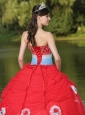Tulle Strapless Red Quinceanera Dress For Girl With Flower Beaded Decorate