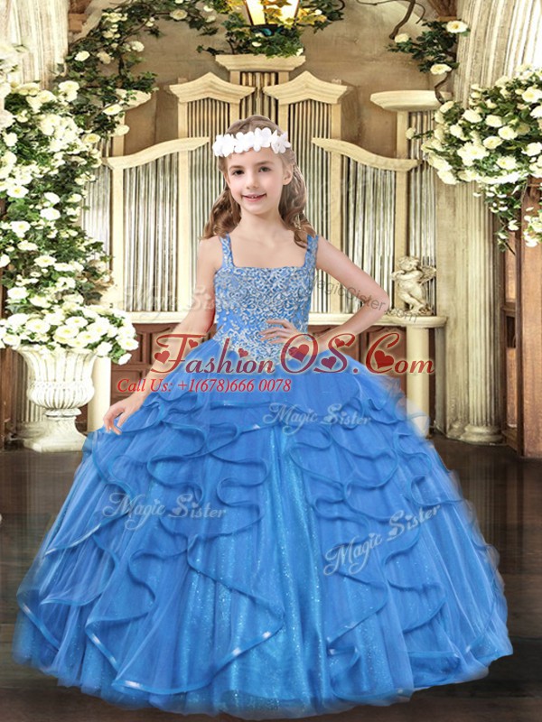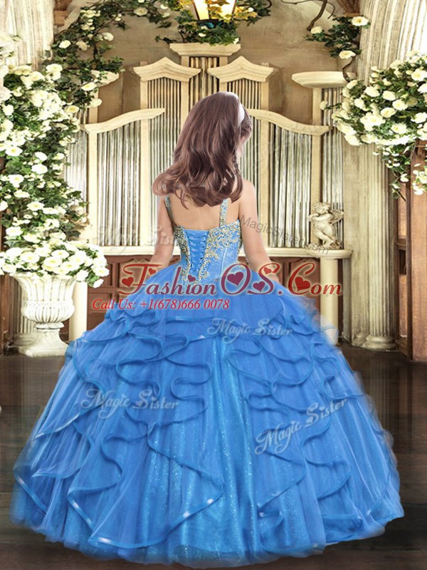 Home >  Special Occasion Dresses >  Pretty Little Girl Pageant Dresses > Tulle Straps Sleeveless Lace Up Beading and Ruffles Kids Pageant Dress in Baby Blue