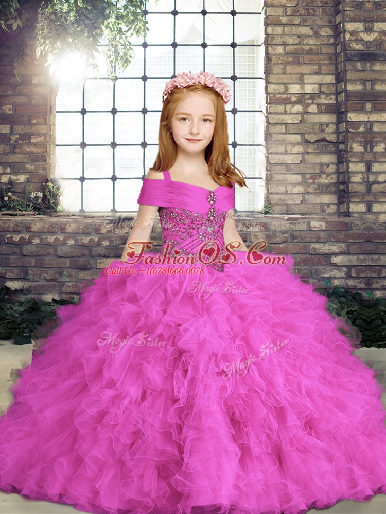 Home >  Special Occasion Dresses >  Lovely Little Girl Pageant Dresses > Tulle Straps Sleeveless Lace Up Beading and Ruffles Little Girl Pageant Dress in Lilac