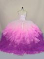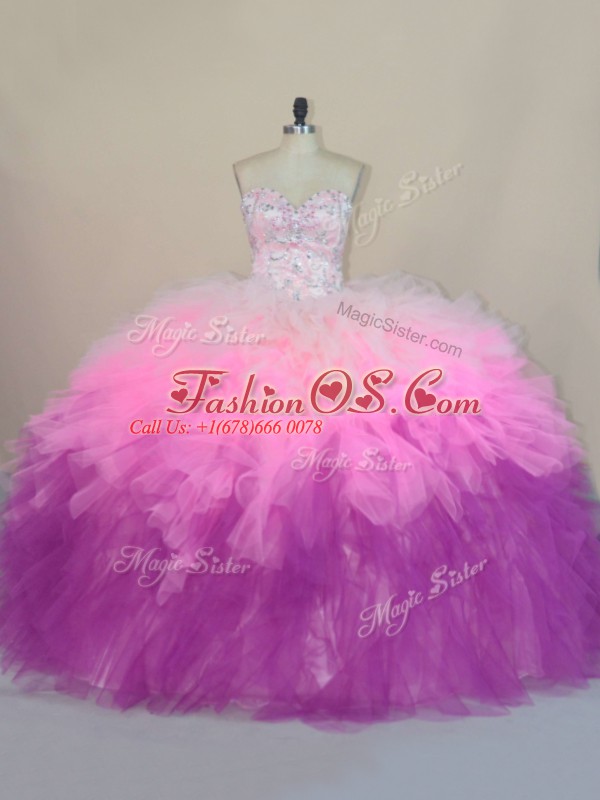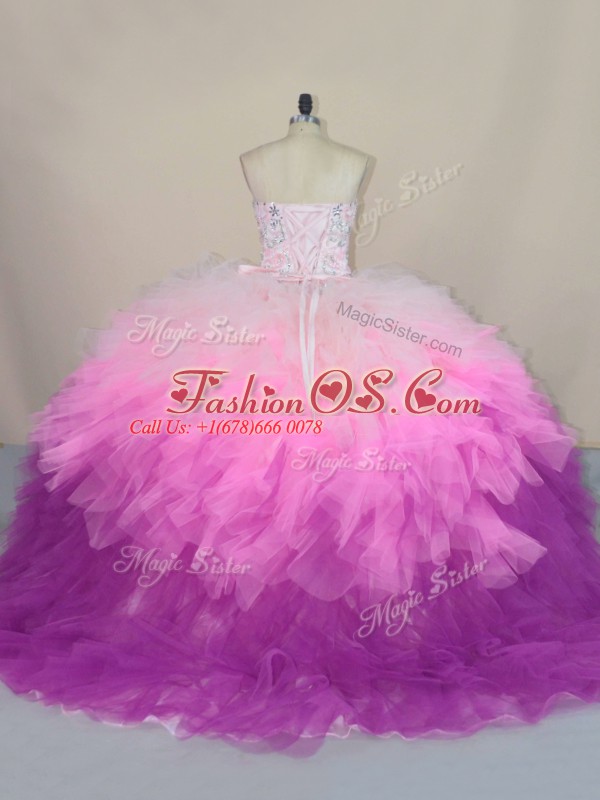 Tulle Sweetheart Sleeveless Brush Train Lace Up Beading and Ruffles Sweet 16 Dress in Multi-color