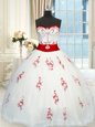 Tulle Sweetheart Sleeveless Lace Up Beading and Appliques and Embroidery Vestidos de Quinceanera in Hot Pink