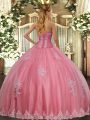 Tulle Sweetheart Sleeveless Lace Up Beading and Appliques Quince Ball Gowns in Lilac