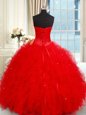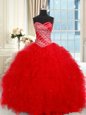 Tulle Sweetheart Sleeveless Lace Up Beading and Sequins Quinceanera Dress in Apple Green
