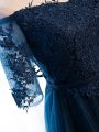 Home >  Special Occasion Dresses >  Elegant Mother of the Bride Dresses > Tulle V-neck Half Sleeves Lace Up Beading and Lace and Appliques Mother Of The Bride Dress in Navy Blue