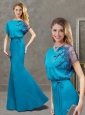 Home >  Special Occasion Dresses >  Mother of the Bride Dresses > Turquoise A-line Hand Made Flower Belt and Ruch Mother Of The Bride Dress With Pick-ups