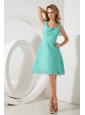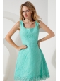 Turquoise A-line / Princess Square Prom / Homecoming Dress Mini-length Lace