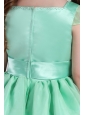 Turquoise A-line Square Tea-length Organza Belt Little Girl Dress