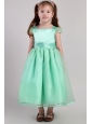 Home >  Flower Girl Dresses > Turquoise A-line Square Tea-length Organza Belt Little Girl Dress