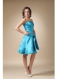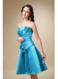 If you want to find a simple but chic dress, this aqua blue short dress must be your best choice! This fabulous short dress features with strapless bodice. Intensive pleats on whole bodice highlights the style. A sweet hand made rose on the bow is lovely and adorable, which will always attract attentions of all. The unique design and special style lead the fashion all the time and you can't miss it!