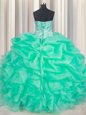 Turquoise Ball Gowns Beading and Ruffles and Pick Ups Quinceanera Dresses Lace Up Organza Sleeveless Floor Length