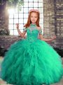 Home >  Special Occasion Dresses >  Beautiful Kids Pageant Dresses > Turquoise Ball Gowns Beading and Ruffles Pageant Dress Lace Up Tulle Sleeveless Floor Length