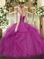 Turquoise Ball Gowns Beading and Ruffles Quinceanera Gown Lace Up Tulle Sleeveless Floor Length