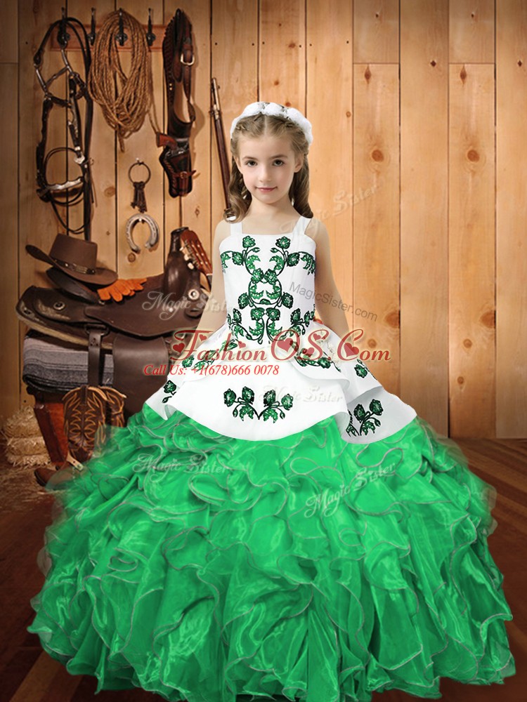 Turquoise Ball Gowns Organza Straps Sleeveless Embroidery and Ruffles Floor Length Lace Up Child Pageant Dress
