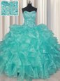 Turquoise Ball Gowns Sweetheart Sleeveless Organza Floor Length Lace Up Beading and Ruffles 15 Quinceanera Dress
