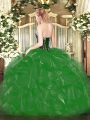 Turquoise Ball Gowns Sweetheart Sleeveless Organza Floor Length Lace Up Beading and Ruffles Vestidos de Quinceanera