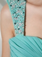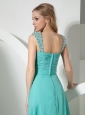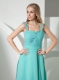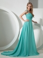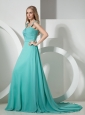 Turquoise Brush Train Gorgeous Evening Dress With Beaded and Ruch Decorate Straps Chiffon