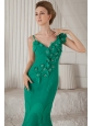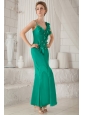 Home >  Special Occasion Dresses >  Mother of the Bride Dresses > Turquoise Column / Sheath Asymmetrical Ankle-length Chiffon Hand Made Flowers Mother of the Bride Dress