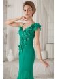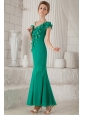 Turquoise Column / Sheath Asymmetrical Ankle-length Chiffon Hand Made Flowers Mother of the Bride Dress