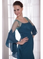 Turquoise Column / Sheath Square Chiffon Brush / Sweep Mother of the Bride Dress