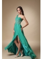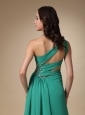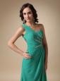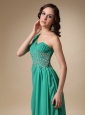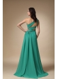 Home >  Prom Dresses >  New Arrivals > Turquoise Empire One Shoulder Brush Train Chiffon and Elastic Woven Satin Beading Prom Dress