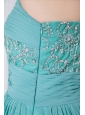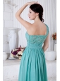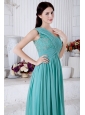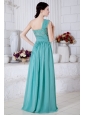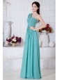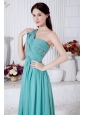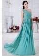 Turquoise Empire One Shoulder Prom Dress Chiffon Appliques Floor-length