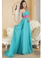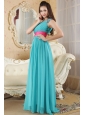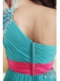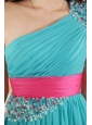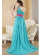 Home >  Prom Dresses >  Beautiful Prom Dresses > Turquoise Empire One Shoulder Prom Dress Chiffon Ruch and Beading Floor-Length