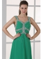 Turquoise Empire Straps Prom Dress with Beading Floor-length
