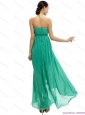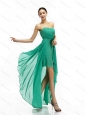 Turquoise High Low Beading Prom Dresses with Ruching and Bowknot