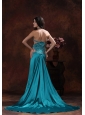 Turquoise High Slit Halter Brush Train Prom Dress With Beaded Decorate In Williams Arizona