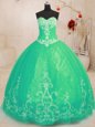 Turquoise Lace Up 15 Quinceanera Dress Beading and Embroidery Sleeveless Floor Length