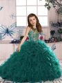Turquoise Lace Up Scoop Beading and Ruffles Kids Formal Wear Organza Sleeveless