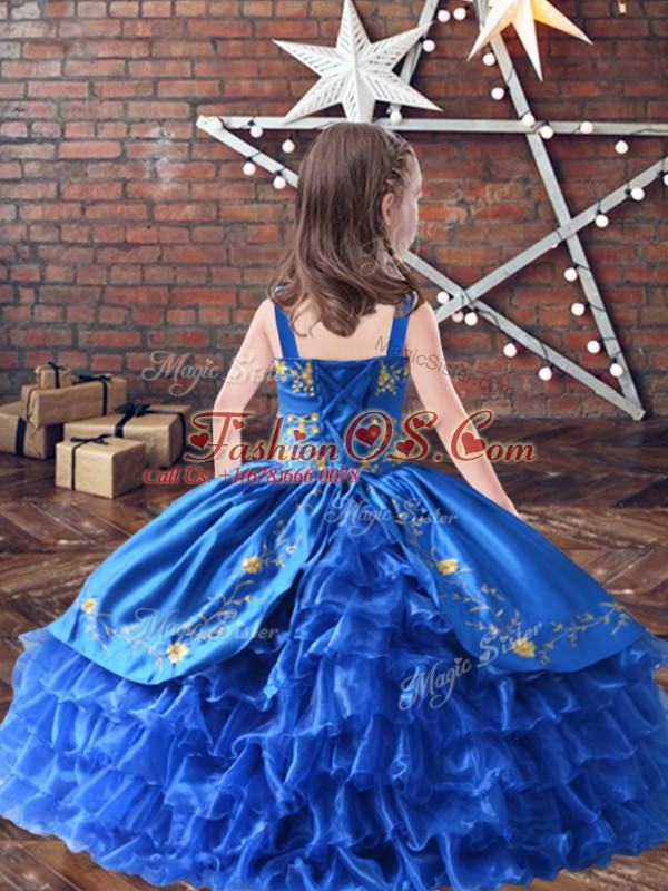 Home >  Special Occasion Dresses >  Pretty Little Girl Pageant Dresses > Turquoise Lace Up Straps Embroidery and Ruffled Layers Little Girl Pageant Gowns Satin and Organza Sleeveless