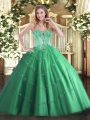 Turquoise Lace Up Sweetheart Beading and Appliques Ball Gown Prom Dress Tulle Sleeveless