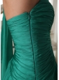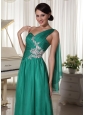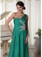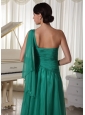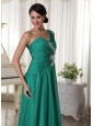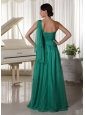 Turquoise One Shoulder Appliques and Ruch Decorate Bust Chiffon Prom Dress For Formal Evening