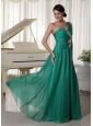 Home >  Prom Dresses >  Elegant Prom Dresses > Turquoise One Shoulder Appliques and Ruch Decorate Bust Chiffon Prom Dress For Formal Evening