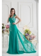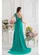 Home >  Prom Dresses >  Modest Prom Dresses > Turquoise One Shoulder Beading and Ruching Prom Dress with Brush Train