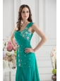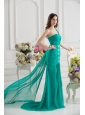 Turquoise One Shoulder Beading and Ruching Prom Dress with Brush Train