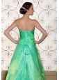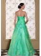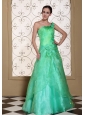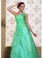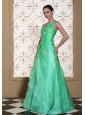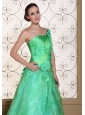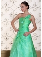 Turquoise One Shoulder Prom Dress For 2013 A-line Gown Hand Made Flowers Organza