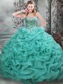 Home >  Quinceanera Dresses >  Luxurious Quinceanera Dresses > Turquoise Organza Lace Up Quinceanera Gowns Sleeveless Brush Train Beading and Pick Ups