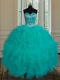 Turquoise Organza Lace Up Sweetheart Sleeveless Floor Length Quinceanera Gowns Beading and Ruffles
