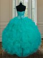 Home >  Quinceanera Dresses >  Discount Quinceanera Dresses > Turquoise Organza Lace Up Sweetheart Sleeveless Floor Length Quinceanera Gowns Beading and Ruffles