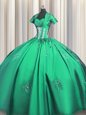 Turquoise Quince Ball Gowns Military Ball and Sweet 16 and Quinceanera and For with Beading and Appliques and Ruching Sweetheart Short Sleeves Lace Up