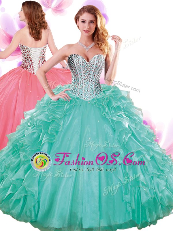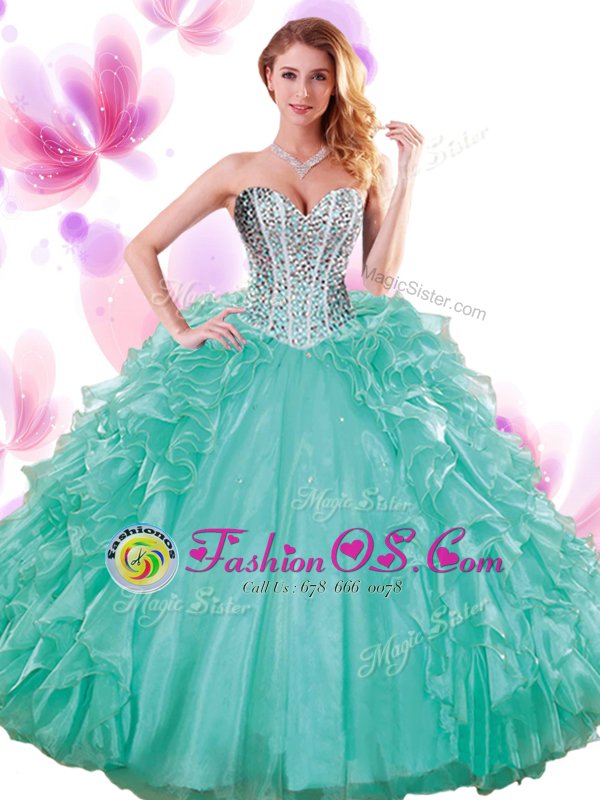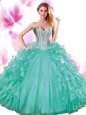 Turquoise Quinceanera Gowns Military Ball and Sweet 16 and Quinceanera and For with Beading and Ruffles Sweetheart Sleeveless Lace Up