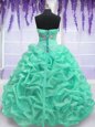 Turquoise Quinceanera Gowns Military Ball and Sweet 16 and Quinceanera and For with Beading Strapless Sleeveless Lace Up