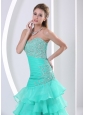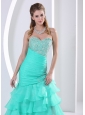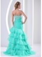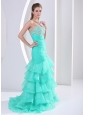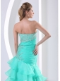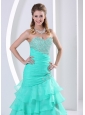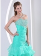 Turquoise Ruched Layered Beaded Decorate and Ruch Bodice Sweetheart Celebrity Dress