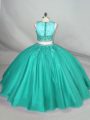 Turquoise Scoop Neckline Beading Quince Ball Gowns Sleeveless Zipper