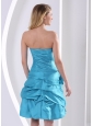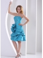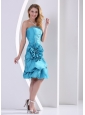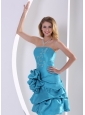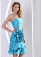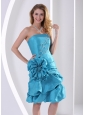 Home >  Prom Dresses >  Unique Prom Dresses > Turquoise Sheath Hand Made Flower Strapless Prom Dress With Appliques and Pick-ups