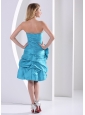 Turquoise Sheath Hand Made Flower Strapless Prom Dress With Appliques and Pick-ups