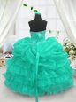Turquoise Sleeveless Beading and Ruffled Layers and Pick Ups Floor Length Little Girl Pageant Gowns